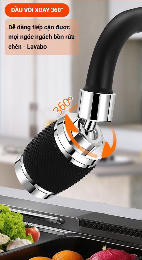 - Xoay 360°: Dễ dàng tiếp cận được mọi ngóc ngách bồn rửa chén - Lavabo