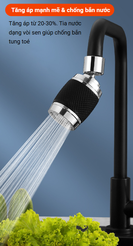 Đầu vòi tăng áp Whisk đa dụng - Giải pháp tiện ích của mọi nhà. Không chỉ tăng áp lực nước, mẫu đầu vòi cải tiến này còn xoay 360° & 3 chế độ phun đáp ứng mọi nhu cầu sử dụng.